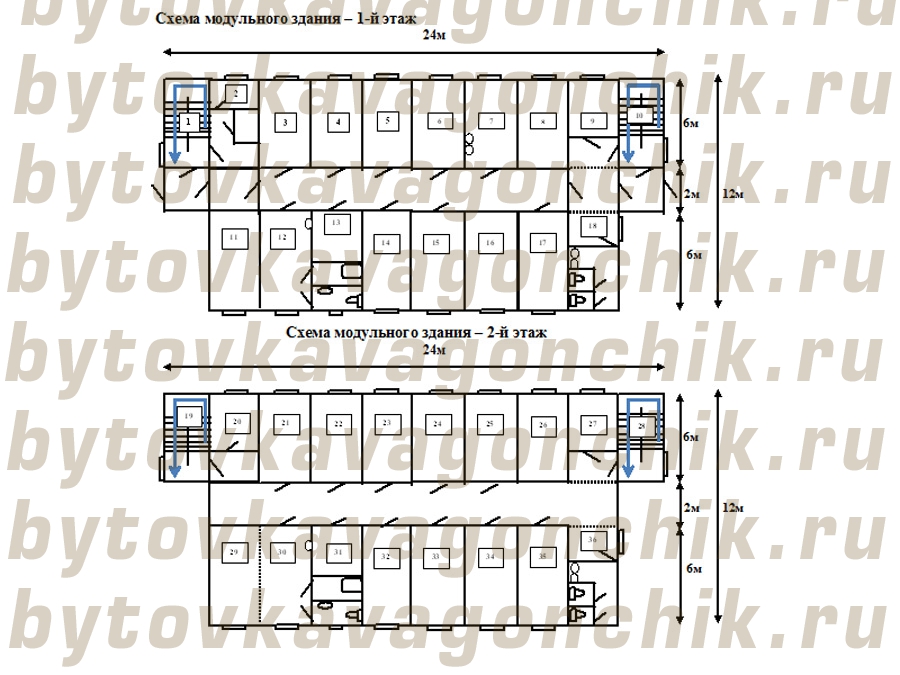 6. Блок-модуль 6*4,8*2,5 -1шт.  (раздевалки женская/мужская – 11, 12; 29, 30)